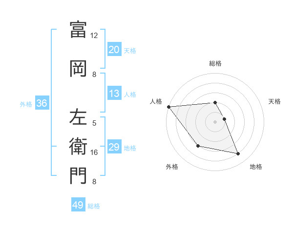 富岡 左衛門さんを姓名の画数から五運を鑑定