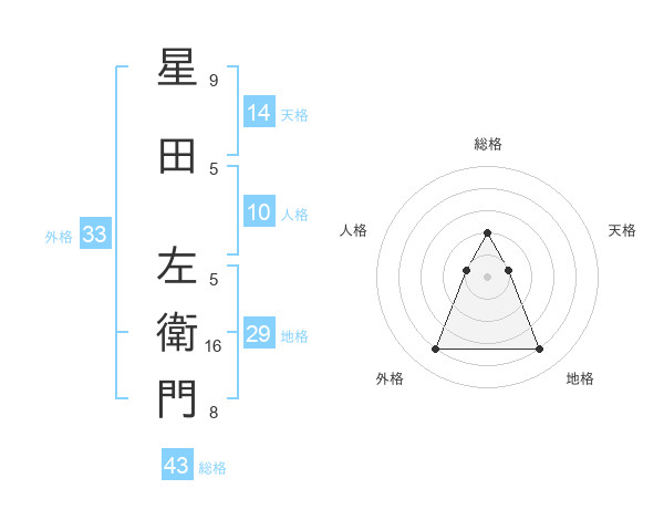星田 左衛門さんを姓名の画数から五運を鑑定