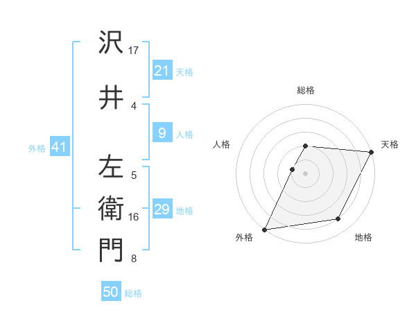 沢井 左衛門さんを姓名の画数から五運を鑑定
