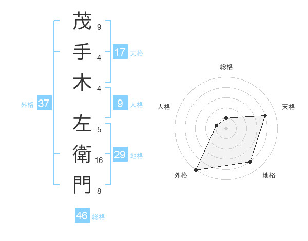 茂手木 左衛門さんを姓名の画数から五運を鑑定