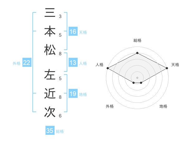 三本松 左近次さんの天格は16画の5点!