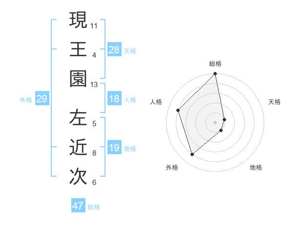 現王園 左近次さんを姓名の画数から五運を鑑定