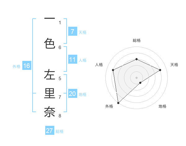 一色 左里奈さんを姓名の画数から五運を鑑定