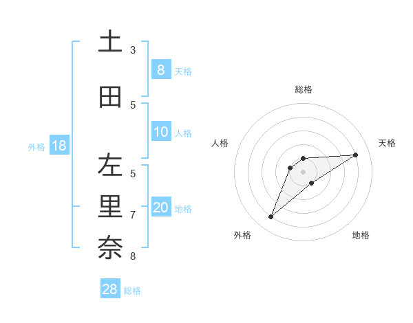 土田 左里奈さんを姓名の画数から五運を鑑定