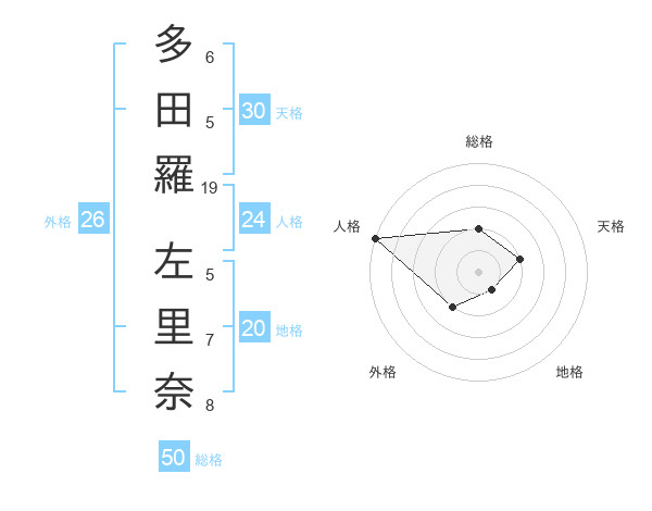 多田羅 左里奈さんの総格は50画の2点!
