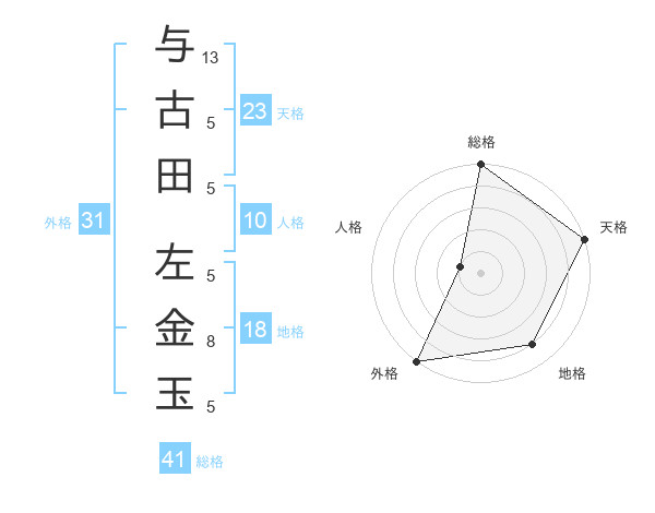 与古田 左金玉さんの外格は31画の5点!