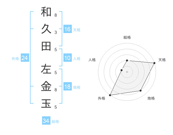 和久田 左金玉さんを姓名の画数から五運を鑑定