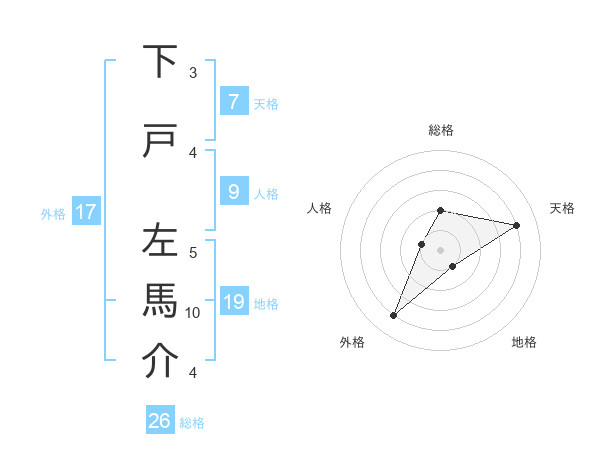 下戸 左馬介さんを姓名の画数から五運を鑑定