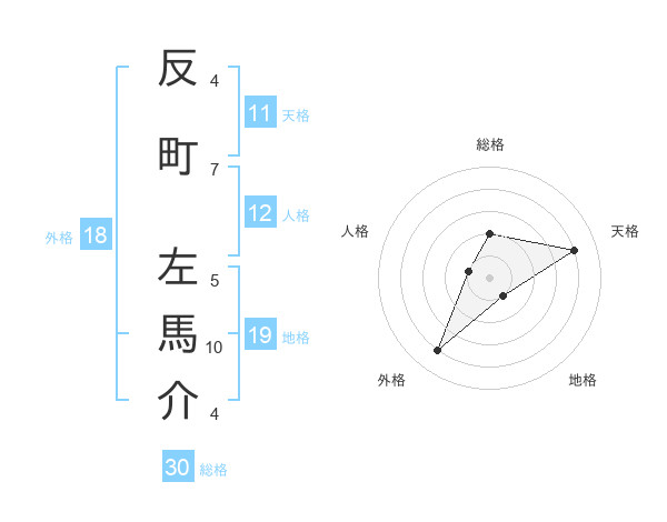 反町 左馬介さんを姓名の画数から五運を鑑定