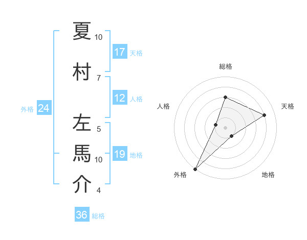 夏村 左馬介さんを姓名の画数から五運を鑑定