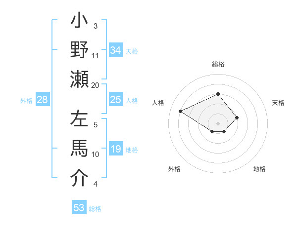 小野瀬 左馬介さんを姓名の画数から五運を鑑定