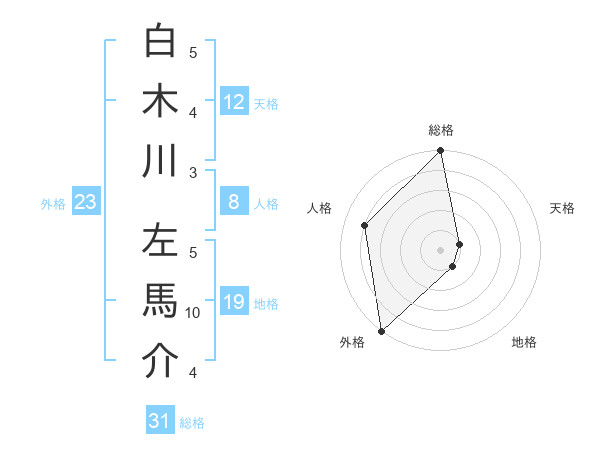 白木川 左馬介さんを姓名の画数から五運を鑑定
