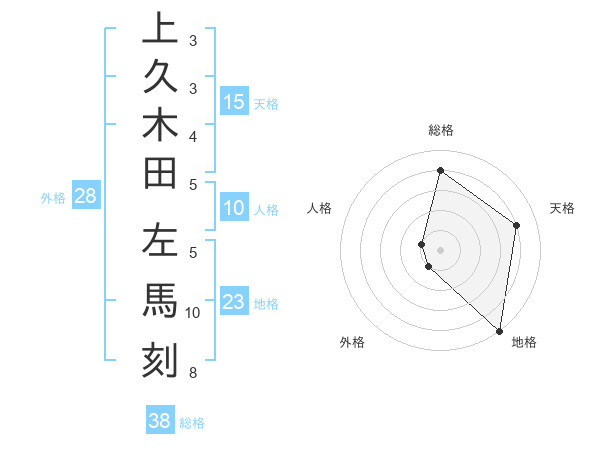 上久木田 左馬刻さんを姓名の画数から五運を鑑定