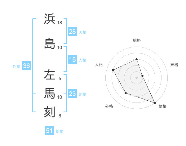 浜島 左馬刻さんの総格は51画の3点