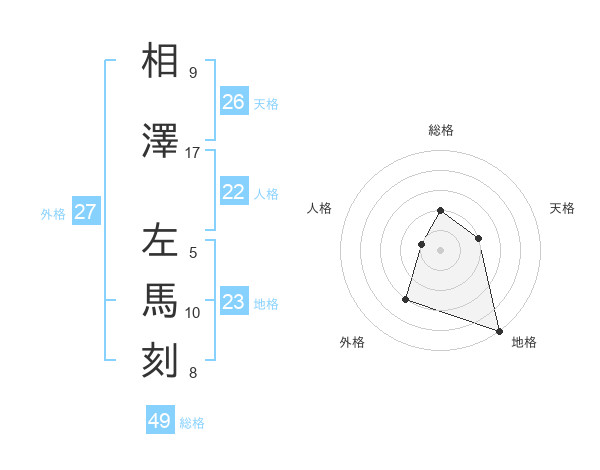 相澤 左馬刻さんを姓名の画数から五運を鑑定