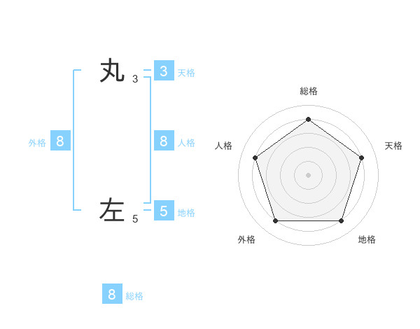 丸 左さんの総格は8画の4点!