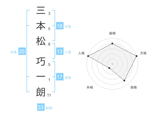 三本松 巧一朗さんを姓名の画数から五運を鑑定