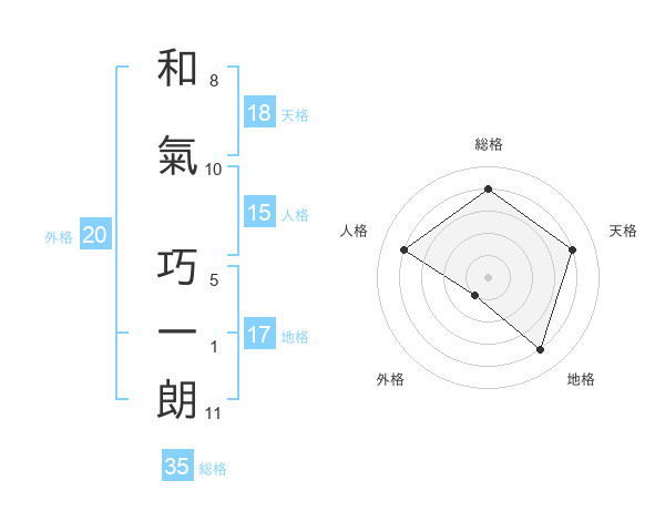 和氣 巧一朗さんを姓名の画数から五運を鑑定