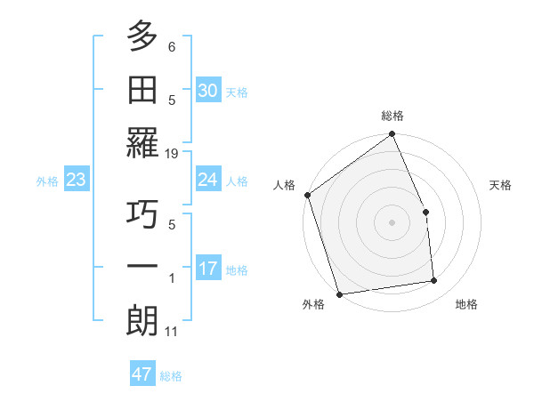 多田羅 巧一朗さんを姓名の画数から五運を鑑定