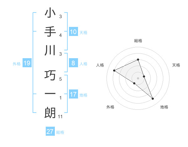 小手川 巧一朗さんの総格は27画の3点!