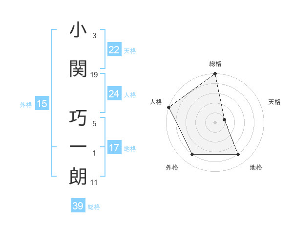 小関 巧一朗さんの総格は39画の5点