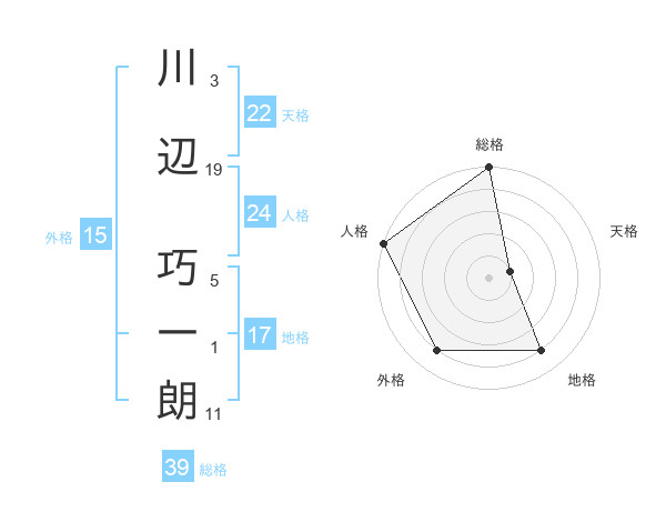 川辺 巧一朗さんを姓名の画数から五運を鑑定