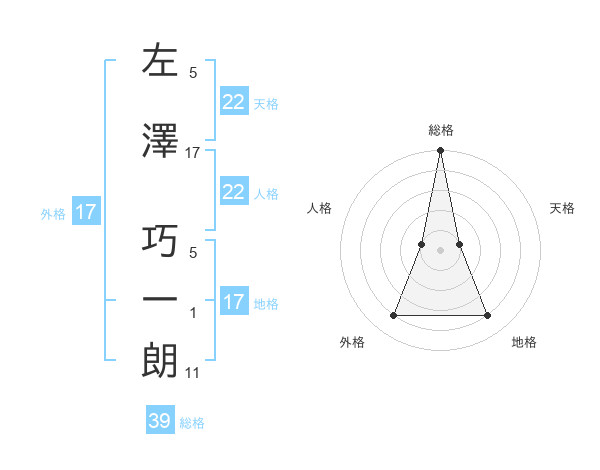 左澤 巧一朗さんを姓名の画数から五運を鑑定