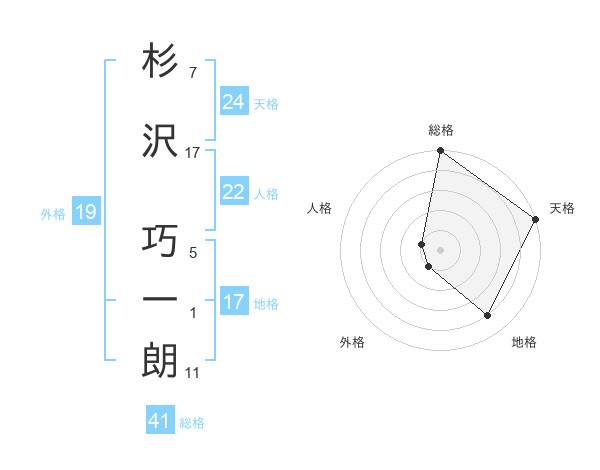 杉沢 巧一朗さんの天格は24画の5点!