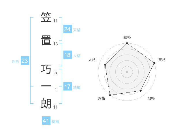 笠置 巧一朗さんの天格は24画の5点!