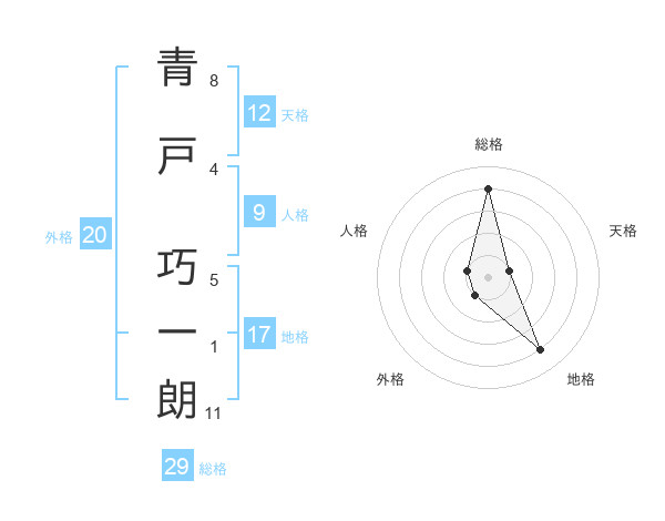 青戸 巧一朗さんの総格は29画の4点!