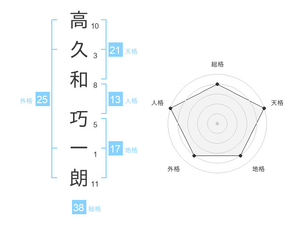 高久和 巧一朗さんの総格は38画の4点!