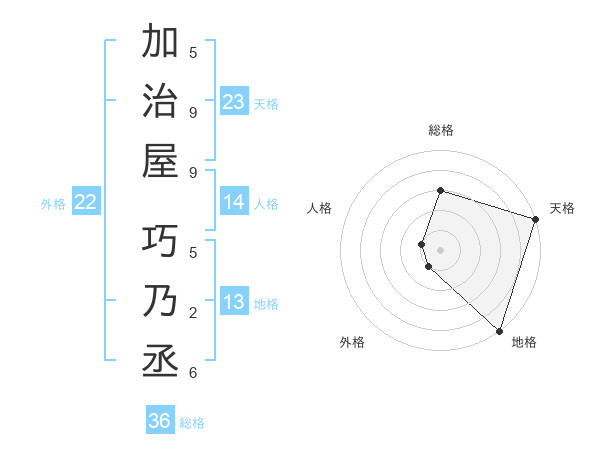 加治屋 巧乃丞さんを姓名の画数から五運を鑑定