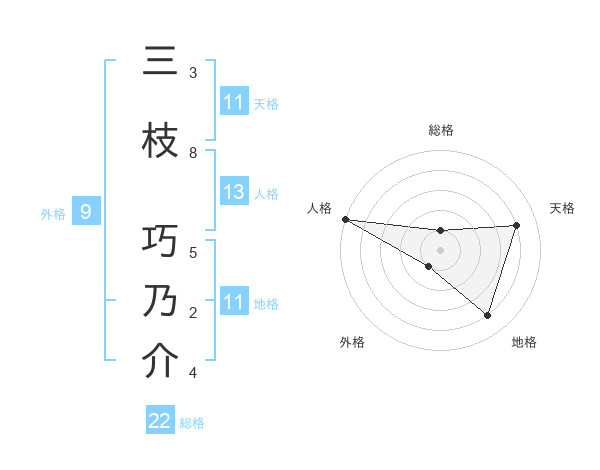 三枝 巧乃介さんを姓名の画数から五運を鑑定