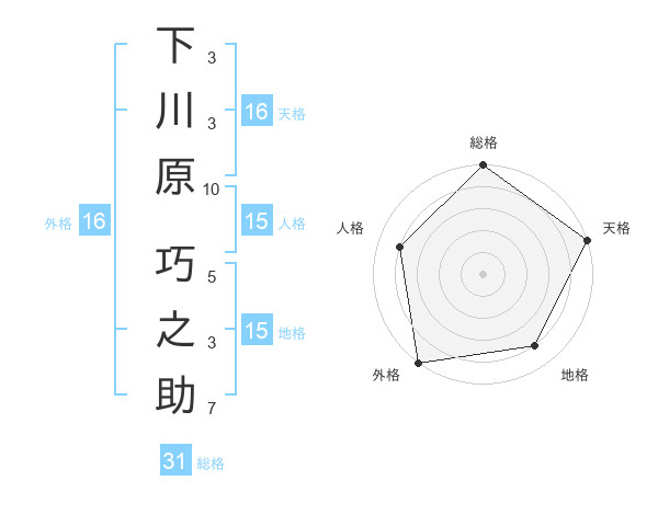 下川原 巧之助さんを姓名の画数から五運を鑑定