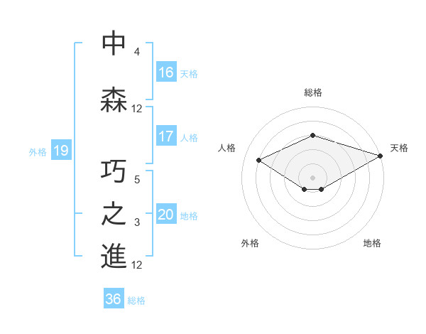 中森 巧之進さんを姓名の画数から五運を鑑定