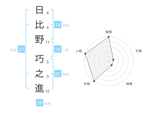 日比野 巧之進さんを姓名の画数から五運を鑑定
