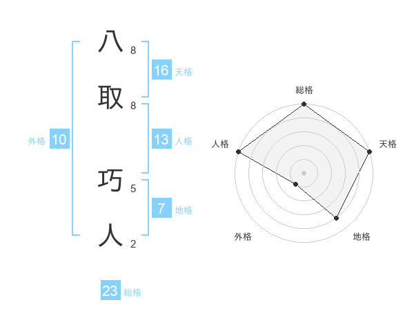 八取 巧人さんの総格は23画の5点!