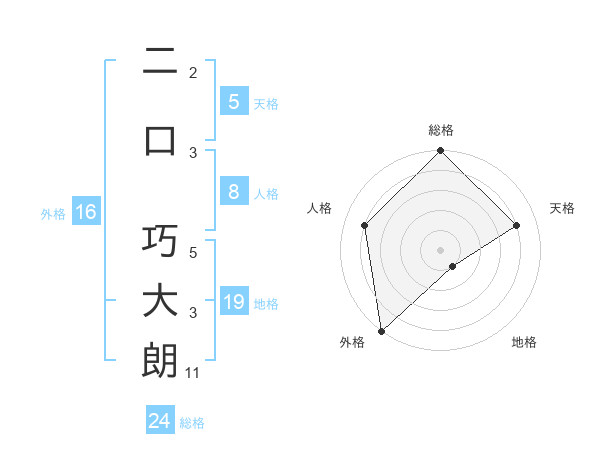 二口 巧大朗さんを姓名の画数から五運を鑑定