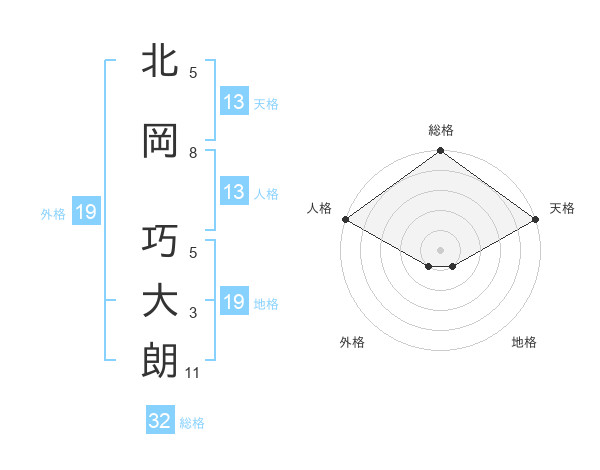 北岡 巧大朗さんを姓名の画数から五運を鑑定