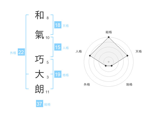 和氣 巧大朗さんを姓名の画数から五運を鑑定