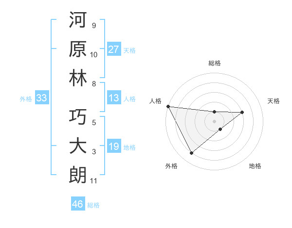 河原林 巧大朗さんを姓名の画数から五運を鑑定