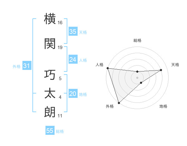 横関 巧太朗さんを姓名の画数から五運を鑑定
