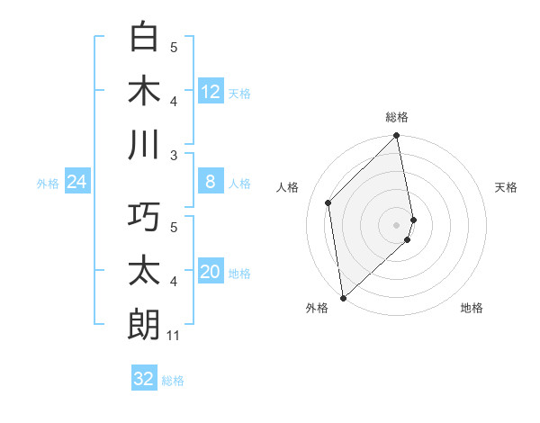 白木川 巧太朗さんを姓名の画数から五運を鑑定