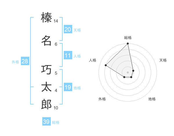 榛名 巧太郎さんを姓名の画数から五運を鑑定