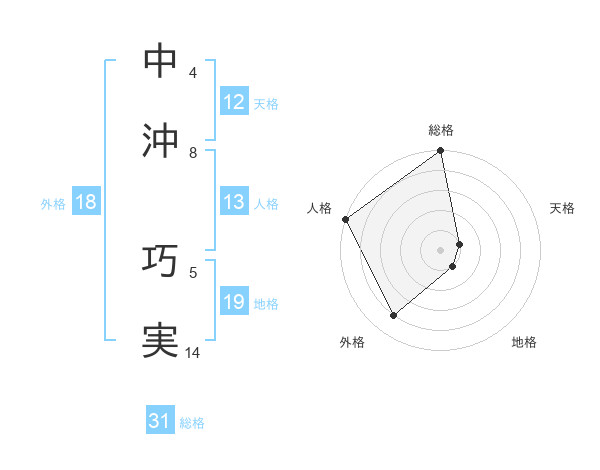 中沖 巧実さんを姓名の画数から五運を鑑定