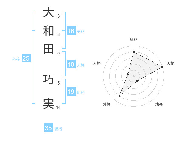 大和田 巧実さんを姓名の画数から五運を鑑定