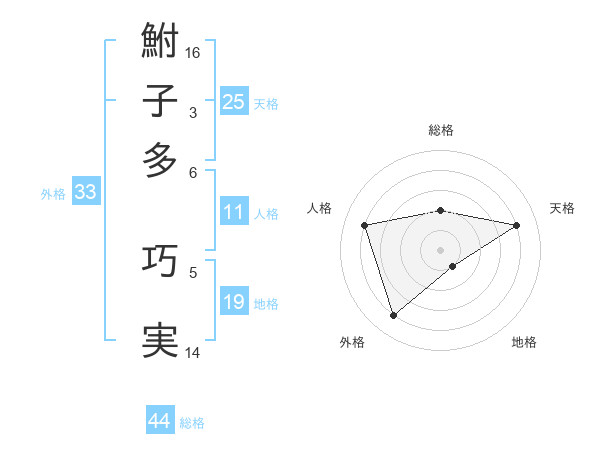 鮒子多 巧実さんを姓名の画数から五運を鑑定
