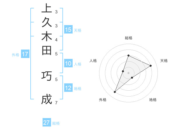 上久木田 巧成さんを姓名の画数から五運を鑑定