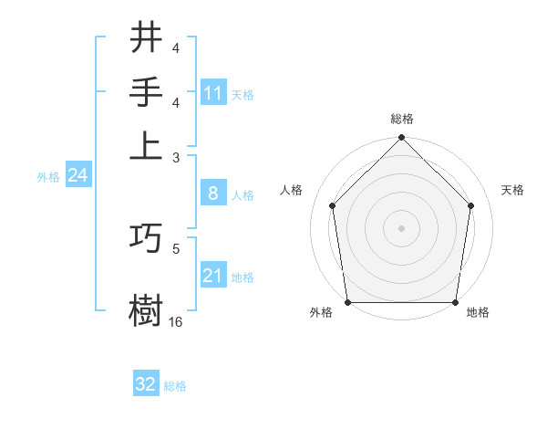 井手上 巧樹さんを姓名の画数から五運を鑑定