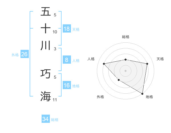五十川 巧海さんを姓名の画数から五運を鑑定